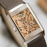 Produced between 1992 and 2002 in a strictly limited run of just 200 pieces in white gold (alongside 900 in rose gold), the reference Q2773460 represents one of the more exclusive interpretations of the model. Housed in the Grand Taille case—first introduced for the 60th anniversary of the Reverso in 1991—it measures 26.1mm by 42.2mm with a height of 9.7mm, offering a proportion that is both classical and assertive.