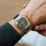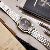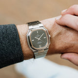 The 1970s was the decade of the luxury steel sports watch. Audemars Piguet led the charge in 1972 with the Royal Oak. Patek Philippe swiftly responded with the Nautilus in 1976, and Vacheron Constantin brought up the rear with the reference 222 in 1977. So you may be surprised to hear that the 222 wasn’t Vacheron’s first attempt at a new, integrated bracelet defined sports watch. In fact, in 1975 Vacheron’s first crack of the whip was the Chronomètre Royal 2215. This lesser-known model represents quite a departure from the typical pieces Vacheron was putting out prior to the 1970s, such was the ripple effect of the Royal Oak’s success, and of course, the impending doom known as the quartz crisis. Predominantly it was Swiss watchmakers who needed to become a little more creative and perhaps daring with their references to remain attractive to modern and evolving wrists as batteries took over. Vacheron reacted quickly to Audemars Piguet’s contribution with the 2215 sporting a rather contemporary, chunky aesthetic. One could argue that the 2215 of 1975 is actually a closer resemblance to the Nautilus of 1976 with its angular shouldered case body and alike bracelet design.