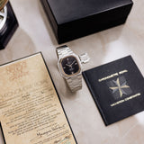 This Vacheron Constantin Chronomètre Royal 2215 is presented in superb condition for its age. Acquired from the original owner, who carefully preserved it in his safe for over 20 years, the watch remains remarkably well-kept. It is accompanied by its original warranty papers dated 1985, the original Chronomètre Royal box, a Vacheron Constantin booklet, and additional links for the steel bracelet. This is a truly exceptional example of an important yet often overlooked model in Vacheron Constantin’s distinguished history.