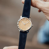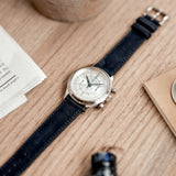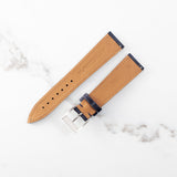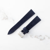 Mr Watchley Nubuck Navy Blue straps have special finishes with a very original grain. It's a strong leather that is coming from the very best part of the hide. During the process, the bull skin is finely sanded on the grain side, which gives these watchstraps their special characteristics creating a velvet-like surface and feel.