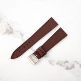 Mr Watchley Grained Brown calf strap comes from the male calfskin and is famous for its resilience and luxurious textured look thanks to the embossment of the grain patterns into the leather. This typical laminated appearance and resilient structure explains why brands like Hermès are fond of this material.
