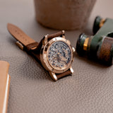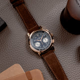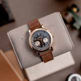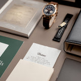 The 1815 Chronograph is a proportional masterclass from A.Lange & Söhne. On paper, it delivers a sweet spot in width, height and length, and in-person these measurements translate effortlessly. The prominent lugs confirm the unequivocal Lange design language with the added bonus of wrist hugging properties. The rich blend of 18-carat rose gold with its black dial and contrasting sub-registers creates such a quintessential luxurious appearance.
