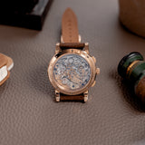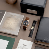 Often referred to as the little brother of the Datograph or "Dufourgraph", the first generation 1815 Flyback Chronograph is the perfect intersection of haute horology meets realistic, daily usability. Encased in 18-carat pink gold, this 39.5mm wide watch features signature notched lugs complete in a polished finish with accompanying beveling and a gentle downturn. The case is skillfully constructed with an overriding air of simplicity. Gracefully squared off chronograph pushers occupy the right-hand side of the case with its suitably sized, easy to operate crown to match. A rounded bezel directly plays into the hands of wearability and dynamic elegance.
