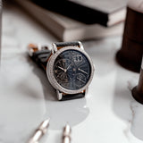 This particular offering is an outstanding example of the rare platinum anniversary set, including the Lange 1 reference 101.062 and the Kleine Lange 1 reference 811.062. Some of the most sought-after Lange 1 models are those fitted with black dials — these examples have widely become affectionately known as the 'Darth'. However, the platinum anniversary set is arguably the next level of Darth models with not only its black colour but also its gorgeous guilloché detailing. For many, these are the pinnacle of the Lange 1, and in a similar vein to the Darth. Appropriately, we’ve come to refer to it as “The Death Star.”