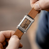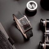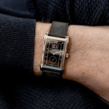 For those who may not be familiar with how rectangular watches wear on the wrist, the length (or lug to lug measurement) of the watch is arguably more important than the width of the case. As alluded to earlier, the Cabaret is beautifully poised proportionally suiting a wide array of wrist sizes. Commonly, contemporary rectangular watches measure either the low thirty millimetres in length or forty millimetres plus. With a length of 36mm, the Cabaret splits the difference exquisitely allowing the case externals such as the stepped design to contribute hugely to wrist presence.