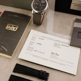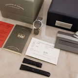 This A. Lange & Söhne Lange 1 Ref 101.035 is offered with its complete, full set. The original boxes (inner & outer), Warranty papers, manual, leaflet, New ALS strap, ALS tag and ALS cloth. On top of the original papers, the watch comes with an extra Extract from archive. The watch is presented in very good condition with only some hairlines and has never been polished.