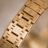 This is arguably the most lustrous case and dial pairing for the more compact Royal Oak package in a superlative like-new condition. The pictures speak a thousand words.