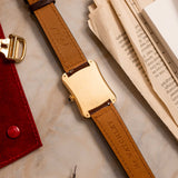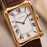The Cartier Bamboo Coussin (Coussin being the French for cushion) was created in two sizes: a lady’s version with reference 78110 and the larger version (28.5mm x 36mm) presented here, with reference 78102. This particular piece exhibits a low serial number, placing it amongst the early versions of the watch. Rumoured that only around 250 pieces of the Bamboo Coussin with reference 78102 were ever produced, this timepiece is a little-known - and highly original - 1970s Cartier treasure.