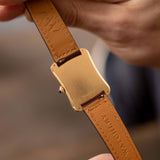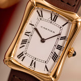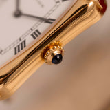 Two interesting features of the dial, which denote this particular Bamboo Coussin's early manufacture, are the vintage style font of the 'Cartier' below the 12 and the capitalised, uncommonly prominent 'PARIS' at the 6.