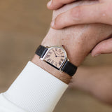 To wear the Cloche is to embrace Cartier's spirit of the unexpected. On the wrist, the asymmetric case challenges traditional orientation. It's 37mm height by 28mm width, and a svelte 6.5mm profile gives it a jewel-like intimacy. The bell-shaped case naturally draws the eye, and while its asymmetry might appear unconventional at first glance, it settles against the wrist with surprising comfort.