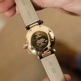 Graced with truly divine panache, this incredible dress watch is certainly not for the faint-hearted. It is the most elegant statement of strength. With or without its bedazzling grill, it has enthralling presence on the wrist, it is a watch that will add blissful shine to any outfit and when worn with grill, may potentially and quite magnificently, outshine any outfit. An absolutely exquisite piece to wear.