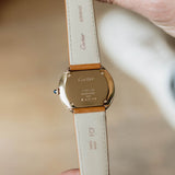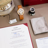 Dating from 2022, this Cartier Pebble is in excellent condition, showing minimal signs of wear and is presented as a full set. The watch was sold privately, complete with its original 18k yellow gold Cartier pin buckle and its original strap.