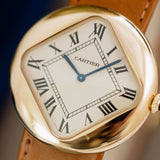 For the Cartier collecting community, few watches top the Pebble. In 1972, Jean-Jacques Cartier's New Bond Street boutique produced this unusual 'square in circle' piece. With the Crash having come five years before, it's comprehensible why the decision to rotate the Pebble's square dial was made. In total, it is believed that les than a dozen examples were ever produced, with the most being rendered in yellow gold and one is known in white gold fitted with a black dial – that was until Cartier's modern CPCP collection decided to celebrate this creation.