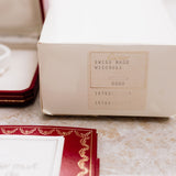 This Cartier Santos Dumont is in superb condition for its age. It's offered as a rare and incredible full set dating from 1994. A signature red Cartier box, complementing papers, Cartier service papers, the original outer Cartier outer box with matching serial numbers and a Cartier white gold pin buckle are all included.