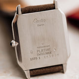 On the case's reverse side, the engraving "Cartier Paris" is followed by "Mecanique", "Platine", along with the reference and serial number. The 1575-1 variant was predominantly crafted in yellow gold, with a significantly smaller number produced in Platinum.
