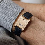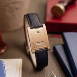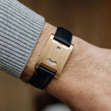 This Tank à Guichets is more in line with conventional sizes for classic Tanks. However, its wrist presence is still commanding, with chunky brancards and its lack of a conventional dial. On the wrist, it's quite possibly the most understated watch one could wear. Even to the untrained eye with its lack of Cartier branding, unusual crown placement and double aperture configuration, it's evident that there’s more of a story to this watch than meets the eye. It's a triumph in elegance and embodies the philosophy of tradition and unassuming sophistication.