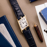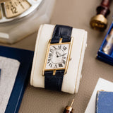 This watch is one of Cartier's truly stellar, modern-day horological creations. A timepiece that is almost never seen on the market, it comes with its original Cartier yellow gold folding buckle, original box and papers.