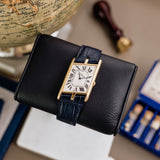 A charmingly off-kilter design, the Tank Asymétrique is a distinctly unique-looking timepiece that holds a rather unique position within the Cartier story. Originally not intended as part of the Tank family but rather as a stand-alone watch, the first version appeared in 1936 under the name "Parallelogram" and was designed with the modern driver in mind. With two hands placed on the steering wheel, by virtue of the unconventional orientation of the dial, the time could be read with effortless ease. As the piece was revisited over the course of Cartier's history, it was embraced into the Tank family and given the name Tank Asymétrique.