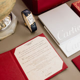 The watch's limited-edition number is prominently and centrally engraved on the brushed, signed caseback, while every other surface of this whirlwind of Cartier brilliance is polished.