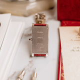 Such an elegant design in platinum is completed in the only Cartier way possible - with a red ruby adorned, beaded crown. This jewel of a timepiece is brushed on every surface bar its polished, light-reflecting and brilliant brancards.