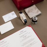 This Cartier Tank Cintrée in platinum dates from 2024 and is presented in like-new condition and is sold as a complete set.