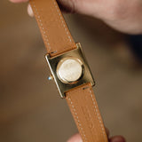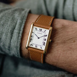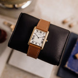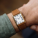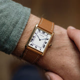 With the innate grace and elegance of any Tank Louis Cartier. Upon first glance, the caseback style of this watch may raise a few eyebrows. The well-trained Cartier eye has come to expect an ultra-flat caseback when a Louis Cartier Tank is presented. Yet the reality is that when on the wrist, this design difference is imperceptible - the watch sits perfectly and looks incredible. The ease and straightforward elegance of its design, as well as fit, make it a very attractive, everyday dress watch. An everyday dress watch with a wonderful slice of historical exclusivity.