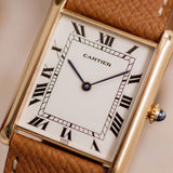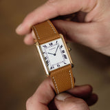 Throughout the years Cartier have played with the design's dimensions and dial configuration but one aspect of this precious timepiece has never been touched - the Tank Louis Cartier is only ever produced in precious metals. Ranging from its classic measurements of 24mm x 30mm to the considerably larger 34.9mm x 40.4mm of a version released in 2012, Cartier has certainly moved to accommodate the modern taste for a larger case size. For those interested in vintage LC Tanks however, larger case options are almost non-existent. An exception being the particularly special timepiece at hand.