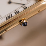 In addition to its superb condition, this vintage timepiece comes with its original Cartier yellow gold pin buckle and an 18mm yellow gold Cartier folding buckle of the era. Recent service papers from Cartier are also included.