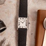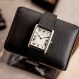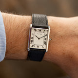 Exhibiting the inherent grace and elegance characteristic of every Tank Louis Cartier, this watch immediately captures one's attention. The caseback style of this timepiece might initially spark curiosity. However, the truth is that once worn on the wrist, this design variation becomes indiscernible - the watch rests seamlessly and boasts a remarkable appearance. The effortless and refined design, along with its comfortable fit, renders it a highly appealing dress watch suitable for everyday wear. It carries the added charm of historical exclusivity, making it an everyday dress watch with a delightful touch of uniqueness from the past.