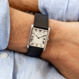 Louis-Joseph Cartier (1875-1942) was a designer and businessman extraordinaire, with an impeccable sense of style. Designer of the Tank, the piece presented here is an example of the version of the watch that he deemed worthy to carry his name. With smoother and softer case lines than the design of the very first Tank that preceded it, the Tank Normale (1917), the Tank Louis Cartier (1922) is the blueprint for that understated yet unmistakable Cartier elegance.