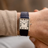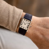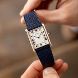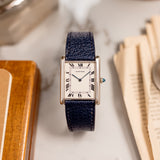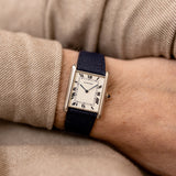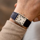 With the innate grace and elegance of any Tank Louis Cartier. Upon first glance, the caseback style of this watch may raise a few eyebrows. The well-trained Cartier eye has come to expect an ultra-flat caseback when a Louis Cartier Tank is presented. Yet the reality is that when on the wrist, this design difference is imperceptible - the watch sits perfectly and looks incredible. The ease and straightforward elegance of its design, as well as fit, make it a very attractive, everyday dress watch. An everyday dress watch with a wonderful slice of historical exclusivity.