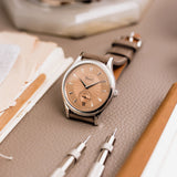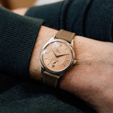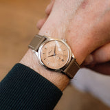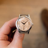 Many different case materials and dial colours were imagined for the watch throughout its life, with the salmon dial becoming the most celebrated—a fact only further proven when