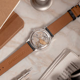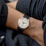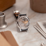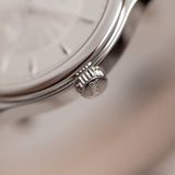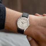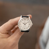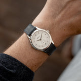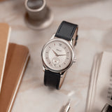 2022 marks the 25th anniversary of the LUC 1860, and what better way to celebrate this milestone than with a pristine example of the Chopard LUC 16/1860/2. This example features an 18-carat white gold case fitted with a silver guilloché dial. The soft and elegantly restrained exterior of the 36.5mm case is gently defined by its stepped bezel before flowing into the blended lugs and case body with remarkable slenderness.
