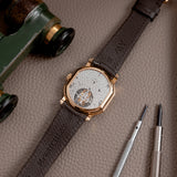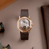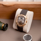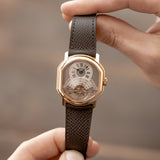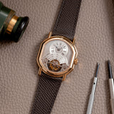 This Daniel Roth C187 Tourbillon dates from the 1990s and is presented as a watch only. The piece shows zero signs of polishing or refinishing and is complete fitted to a Mr Watchley Grained Brown leather watch strap.