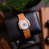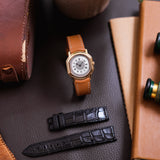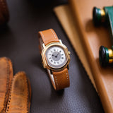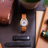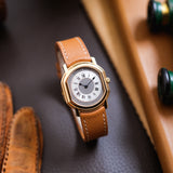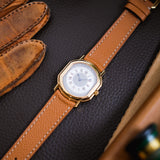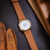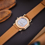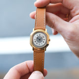 This important Daniel Roth Ref. 2167 Extra Plat dates from the early 1990s. The watch is offered for sale as watch only, with its original Daniel Roth strap and yellow gold buckle. Presented in very good condition, this ref. 2167 is fitted with a Mr Watchley Grained Cinnamon leather strap.