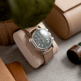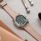 This Daniel Roth Chronograph reference S247 is in mint condition, with only minor signs of wear on the case. It will be delivered with its original Daniel Roth folding buckle and fitted with a Mr Watchley Mr Watchley Grained cream strap from the Mr Watchley collection.