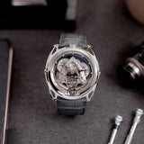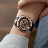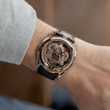 There are quite a few contributing factors that significantly impact the wearability of the DB28 Steel Wheels Piece Unique. Firstly, despite its nearly 43mm width combined with its lugs which add physical size to the piece, the watch suits a range of wrist sizes. This is due to the skeletonisation of said lugs. They draw the eye cleverly to the centre of the piece, therefore mitigating its size. Further aiding wearability is its slenderness partly due to the manual wind movement and the watchmaking prowess of De Bethune. In short, the Steel Wheels wears like nothing else out there. It's a real show stopper piece and challenges everyone's perception of what a mechanical watch can, and should, look like. It seems De Bethune has delivered on its mission statement of creating watches for the 21st century with renown.
