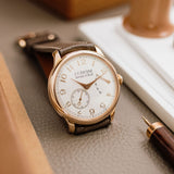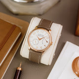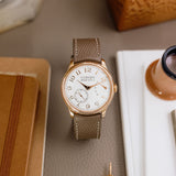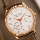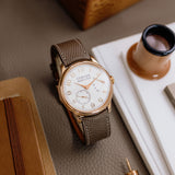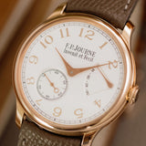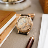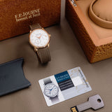 This F.P. Journe Chronomètre Souverain Rose Gold dates from 2018 and is presented as a full set in excellent condition. The watch is fitted to a Mr Watchley Taupe strap.