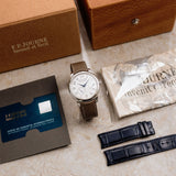 In 1985, Journe started a workshop to build watches for collectors. In 1989, he opened a movement manufacturer, and in 1996, he formed TIM SA, which was dedicated to exclusive calibres for brands. He then launched 'F.P. Journe—Invenit et Fecit' in 1999 with the Tourbillon Souverain. While the F.P. Journe brand's savoir-faire and ability to translate tradition into contemporary have cemented itself as a leader of independent watchmaking, its most straightforward watch remains an incredibly in-demand piece.