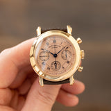 The Double Face represents the brand's most distinguished chronograph expression. A fusion of two dials with functionality that works effectively on both sides due to an extended pinion, the concept is to preserve the sophisticated elegance delivered by dress chronographs while also providing the information-rich function of various scales. With a rattrapante, split seconds, and a full spectrum of configurations, the Double Face became well-known and regarded. After growing in popularity again, 2022 saw Grail Watch suggest and work with Franck Muller to return the model for a 30th-anniversary celebration.