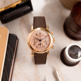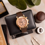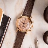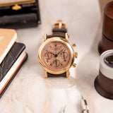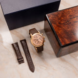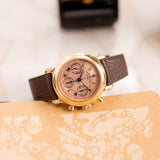 Franck Muller pieces have always been about making a statement, and this Double Face Chronograph 7000 is truly no exception. The salmon colour is significant. The guilloché dial is equally noteworthy, yet finding both key elements on a single pink gold watch raises the rarity bar tenfold.