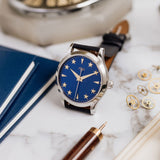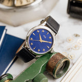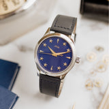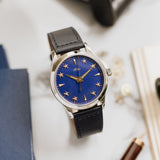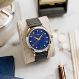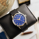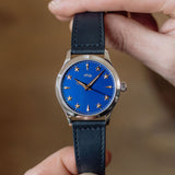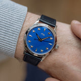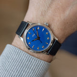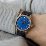 At 38.5mm wide with a height of 10.5mm, this watch is suitable for the full spectrum of wrist proportions. Whether this is a large watch for you or more on the compact side, one thing that's always striking is that dial. Sure, the rich blue dial hue pops, and the golden accents hint at history, but the depth achieved by raising the markers is the true unsung hero of the show.