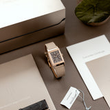 The Grande Reverso Ultra Thin 1931 Chocolate is characterised by its slender 7.3mm thick case and traditional gadroons framing the dial in pink gold, harmoniously contrasting with the glowing chocolate shade of the watch face. The soft pink gold case measures up to the size of the Grande Reverso, being bold on the wrist despite its slenderness with dimensions of 46.8mm by 27.4mm.