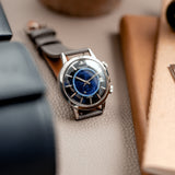 The holy grail of the Memovox, The E855 Lapis Lazuli measuring 37mm with the K825 bumper movement.