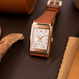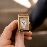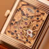 The limited-production Reverso Art Deco was made from 1992 to 2002 and was created just in gold: rose and white. 900 pieces in rose gold and 200 in white gold. The piece's reference number is Q2772420. The case selected for the model was the Grand Taille, which was first used in 1991 for the 60th anniversary Reverso model. It measures 26.1 mm x 42.2mm and sits at 9.7mm in height.