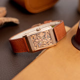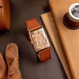 With a case fashioned from rose gold, the first step into those divinely luxurious years of Art Deco is taken.