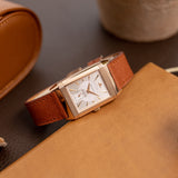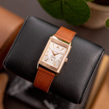 An unforgettable timepiece that is in exceptional condition and comes with its original Rose gold buckle and a Mr Watchley Saffiano Copper strap