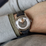 "I wanted to build upon the astrological theme from the hour emblems. The concept of incorporating planetary rulership sparked inspiration. Each zodiac sign has its ruling planet, and since the movement essentially controls what we see, it made conceptual sense to have the zodiac symbols on the dial working as domiciles to the movement", recalls Yuen-Rapati.