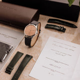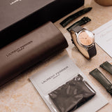 Sold in 2021, this Laurent Ferrier Classic Micro-Rotor is sold with its original full set. Boxes, warranty papers, manual, FL Pin buckle, cloth and original LF strap. Fitted to the a custom Mr Watchley grey Strap. The watch is offered in superb, nearly new condition.