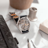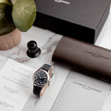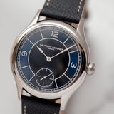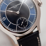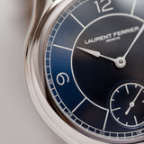 This Laurent Ferrier Classic Micro-Rotor x Salon des Horlogers is presented in like-new condition, having only been worn a handful of times. It is available as a full set and is fitted with a Mr Watchley Grained Navy Blue watch strap with cream stitching to pair with the dial tastefully. The original LF strap is included as well.